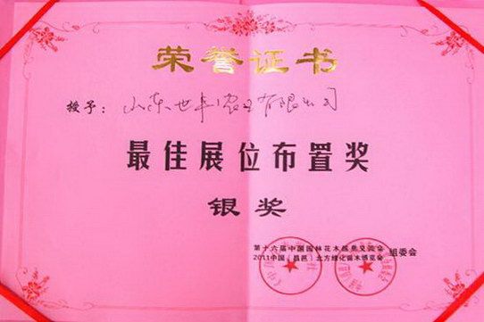 本次盛会由国度林业局、国度外专局、山东省人民当局主理,国度林业局国有林场和林木种苗事故总站、中国花卉报社、山东省林业局、山东省外专局、潍坊市人民当局、昌邑市人民当局承办。绿色时报、中国花卉报、中国绿化苗木网等15家行业媒体相助到场。绿博会突出“传播绿色文化,构建调和社会”主题,以“绿色引领未来”为副主题。在这次展会中山农世丰农业有限公司获“最佳展位布置奖”与“容器苗栽培优胜奖”。此次展会是一届集全面展示园林花木行业最新结果、扩大信息交换与相助、引领园林花木行业当代化程度的展会。