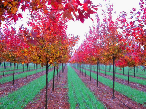 29日上午,正逢秋雨绵绵,13家媒体在世丰农业一号基地观看并感受了色彩夺目的美国红枫和玲珑剔透的北美海棠。当走进世丰基地的刹那,其标准化的种植震撼了每个人的心扉:四五厘米粗的北美海棠和美国红枫,都是3米的株距,4米的行距,整齐如一,排列有序,从这头几乎望不到那一头,树下面,铺设的是滴灌管,浇水、施肥,全部是滴灌化,容器化苗木在这里也占到了一半左右。除此,优雅的树形和靓丽的颜色让人心生喜悦之情,有道是红颜佳人,情钟我辈,海棠开后心如醉,红红的色泽也给这个秋天增添了一道鲜艳的底蕴,此情此景,叫人心醉。