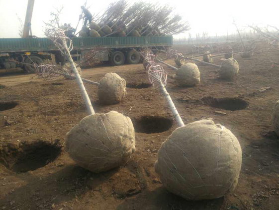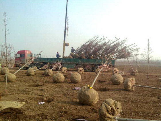 2014年11月24世丰农业开始起苗发货,预计一号基地和二号基地总共要发出一万多棵美国红枫,规模庞大。全部采用进口起苗机,质量高、速度快、土球好。全部使用专车运输,保证质量。从植物生理角度讲,美国红枫由落叶转为休眠,地上部分已停止生长,水分蒸发降到很低而根系在土壤中的活动仍在进行。移栽后根系的伤口容易愈合,因此可发出部分新根。第二年春天发芽早,在干旱到来之前可完全恢复生长,增强对不利环境的抗性,有效的增加来年的生长量。