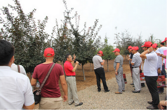 考察团包括来自全国各地的60多家苗企负责人。考察团每到一处参观的地方都认真的听取相关负责人的介绍。并就相关问题和世丰集团的技术人员探讨交流。参观中,考察团一行对美国红枫系列中的红点红枫和夕阳红枫给与了高度评价。