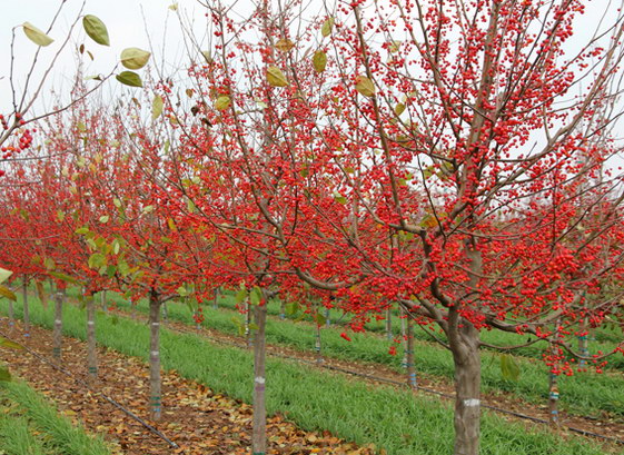 冬天来临,汪湖园区的北美海棠在叶落之后,红彤彤的小果挂满枝头,世丰北美海棠基地让这个冬天没那么冷!