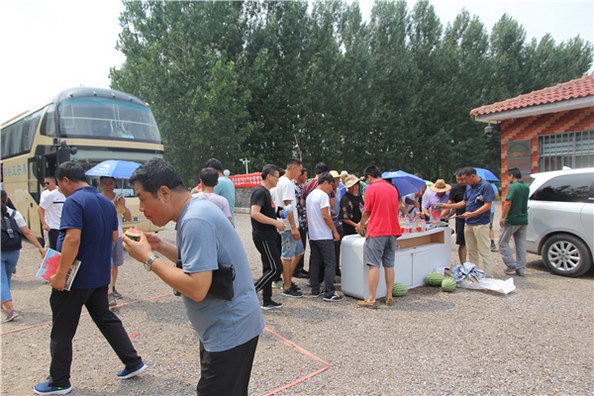7月21日下午,由“新苗商”张总带队的2017年苗木考察团莅临世丰农业参观考察,炎炎夏日,我们也为考察团准备了消暑水果和水,欢迎考察团的到来。
