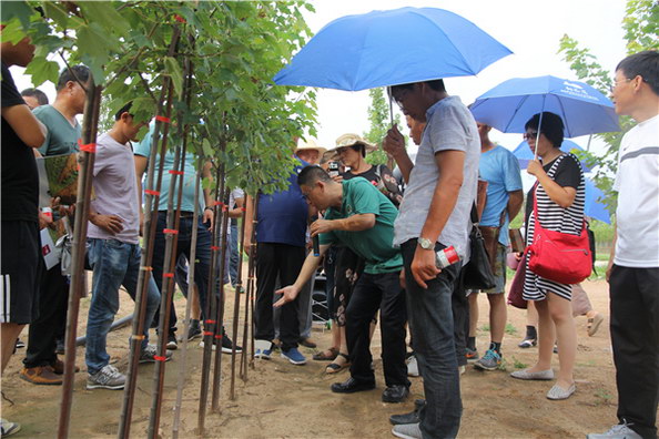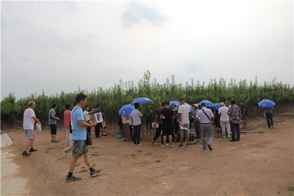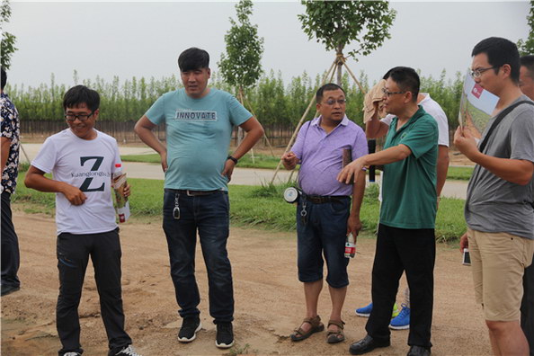 考察团在参观世丰基地的同时,详细听取了公司销售总监郑总关于公司园区的规划、市场需求、苗木的标准化、水肥自动一体化的详细介绍。