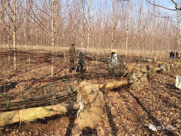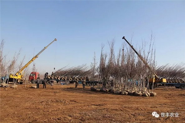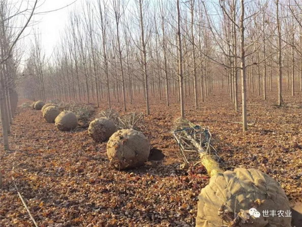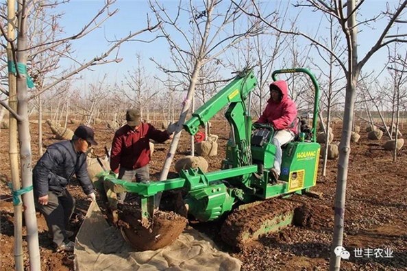 2017年秋冬季,一如既往是世丰农业的“发货季”,此时,世丰农业进口彩色苗木大苗种植基地里面正是一片红火景象,美国红枫大规格苗木正在紧张的进行着挖树前的精准号树、树干包装防护和机械挖树的工作,一批树开挖进行中,另一批树已经“整装待命”······