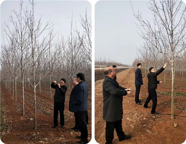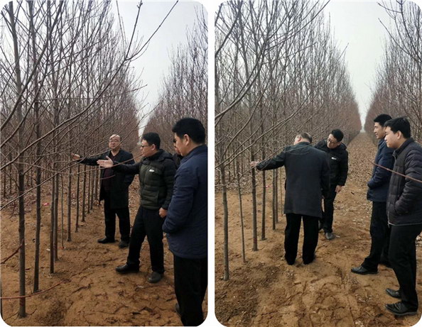 参观过程中工作人员向其详细介绍了美国红枫二年生组培种苗(特点:两年生,抗病虫害能力强;根系发达,长势旺盛,树干通直,树冠饱满,侧枝分布均匀,易于修剪成型;变色统一,艳丽,变色时间更长)、三年生组培商品种苗(特点:三年生,除具备两年苗特点外,可应用于苗圃培育大树,亦可直接应用于工程)、美国红枫和北美海棠工程大苗(特点:红枫大树长势旺盛、树形优美、变色纯正;北美海棠花色丰富、花期长且艳丽,树型优美等特点用于园林造景成景快、易于维护等优点)。