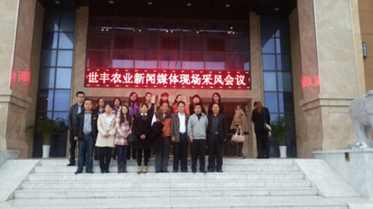 参加世丰农业现场采风活动的13家新老媒体代表合影
