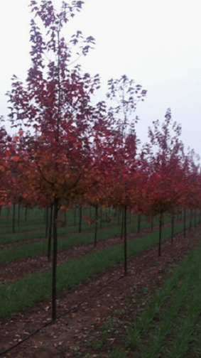 走进世丰的基地,最先让人震撼的是种植标准化。四五厘米粗的北美海棠和美国红枫,都是3米的株距,4米的行距,整齐如一,排列有序,从这头几乎望不到那一头,树下面,铺设的是滴灌管,浇水、施肥,全部是滴灌化,容器化苗木在这里也占到了一半左右。