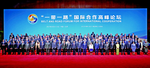习近平同出席“一带一路”国际合作高峰论坛的代表们合影