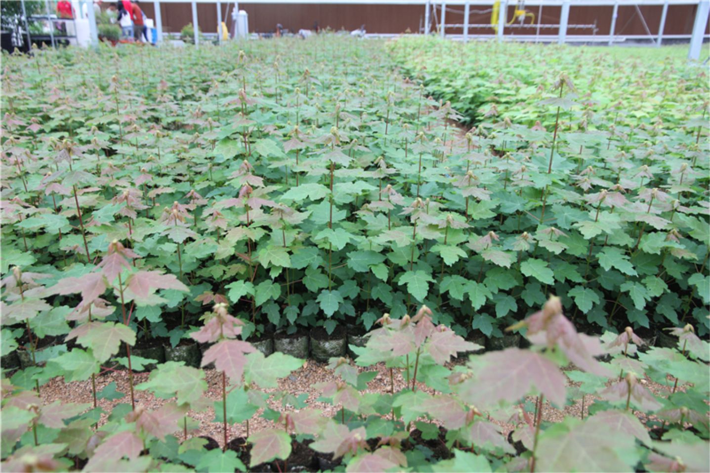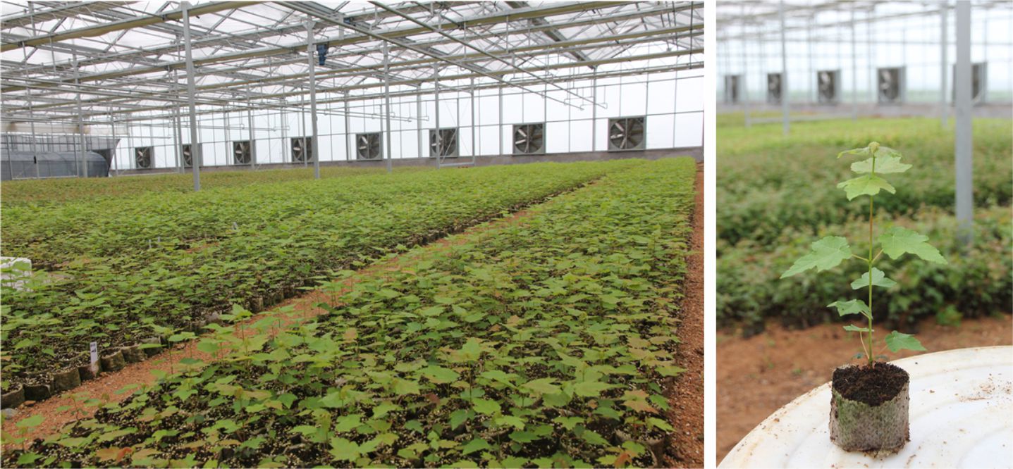 在培养间的精心培养后,美国红枫的组培瓶苗已经成长为了一个个强壮的小生命,配有自动控温、喷灌、弥雾等系统的智能温室将会迎接这些美国红枫组培瓶苗,从培养间的瓶苗到智能温室的钵苗,在技术工人们细心照顾下,在纸钵中焕发出盎然的生机。美国红枫组培种苗拥有强大的根系系统,抗病虫害能力更强,生长更加茁壮。