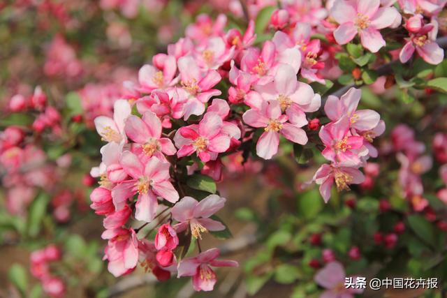 如今,北美海棠已经是北方地区苗圃种植量最多的树种之一,而且近两三年来逐渐被园林绿化市场接受,城市里越来越多地出现“她们”的身影。不过,市民还是少有机会到专业苗圃赏花的,记者忍不住将其间的美图分享出来。