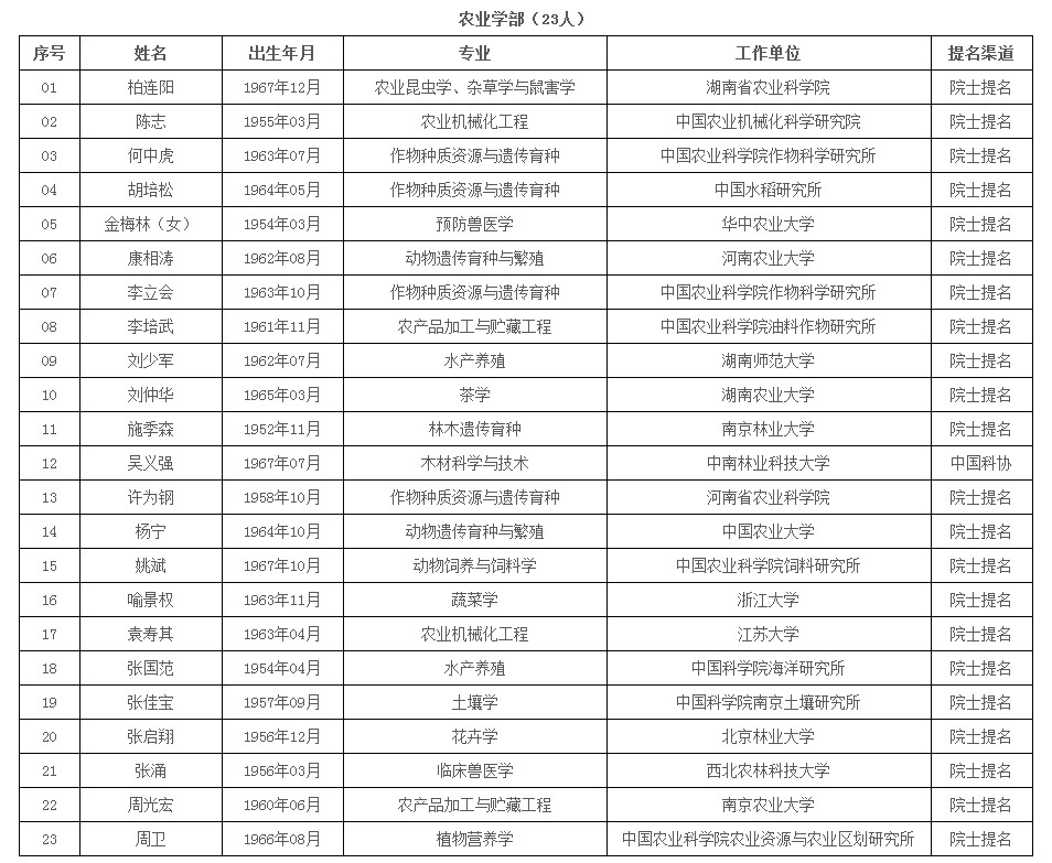 其中农业学部23人入选. (来源:中国工程院)