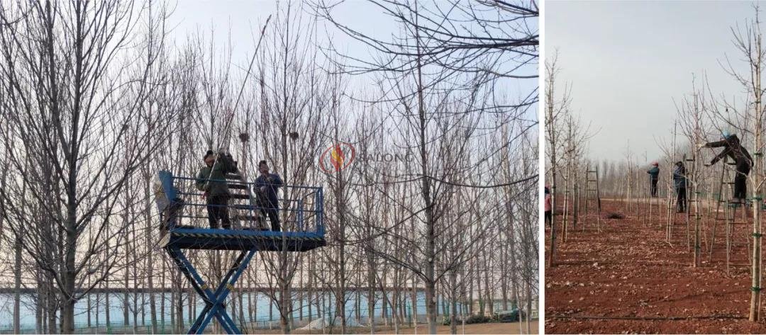到目前为止,几十万棵种苗和大苗的修剪工作已经基本完成了,为了在大寒潮来临之间完成全部的苗木修剪工作,世丰农业所有的技术人员和管理人员齐上阵,有的人在剪、有的人在锯、有的人在旁边指挥、有的人在收拾剪下来的废枝,在寒风凛冽的苗圃里呈现一片繁忙景象。